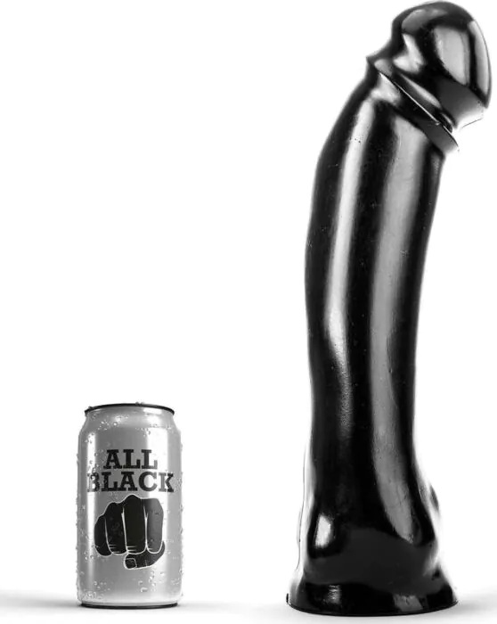 A long, firm 33cm dildo from ALL BLACK designed for deep vaginal and anal play. The straight, solid shaft gives predictable, powerful thrusting for experienced users who prioritise length. Made from phthalate‑free PVC and hermetically wrapped for hygiene, it's compatible with both water and silicone lubricants — the brand suggests Black Hole lubes for optimal glide.