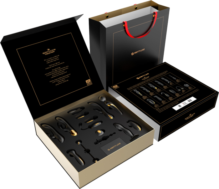 Indulge in the PRETTY LOVE Queens Luxury Collection, featuring 12 sophisticated silicone toys with various functions for a luxurious intimate experience. Great for those who appreciate elegance and versatility in their pleasure products.