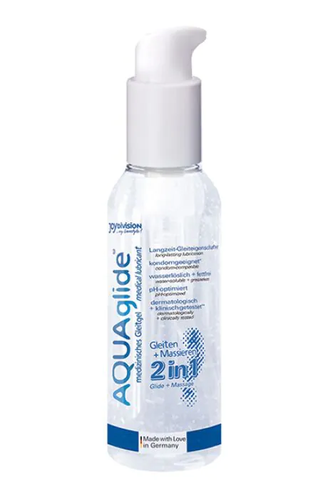 Experience seduction and comfort with JOYDIVISION AQUAGLIDE's 2 in 1 lubricant and massage gel. Práctico for enhancing intimacy and relaxation.
