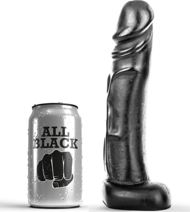 This is a realistic-style dildo from ALL BLACK made in PVC with a flexible shaft designed to follow your body's contours. With a 22cm insertable length and roughly 5cm diameter, it gives notable presence and reach — you'll feel it's a step up in size compared with smaller toys. The material is pliable rather than rigid, so it bends with you rather than forcing a single angle.