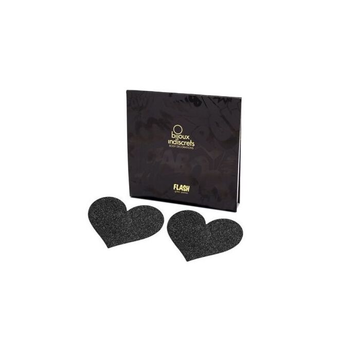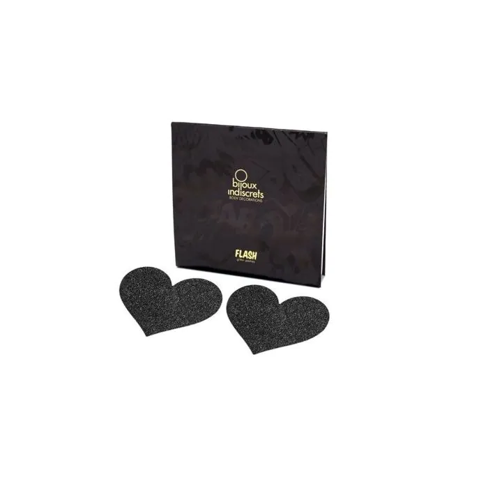 Don't miss the chance to experience the magic of seduction with the Bijoux Flash Black Heart Nipple Pasties. Make your nights shine with your own light and conquer with your unique charm!