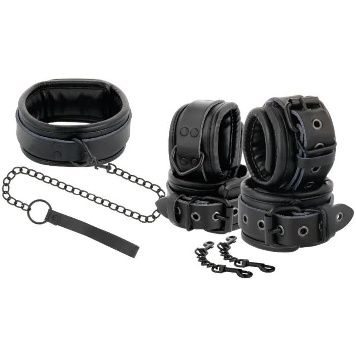 Looking to take your erotic games to the next level? With the Darkness black leather handcuffs and collar, fun is guaranteed!