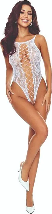 Experience the allure of sophisticated lace with the Passion Woman bodystocking. This piece wraps your body in a stunning blend of 80% polyamide and 20% elastane, ensuring a soft touch and a snug fit that feels like a second skin. The intricate lace and mesh design accentuate your curves, making it a must-have for intimate moments.
