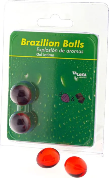Indulge in a playful experience with Taloka's Brazilian Balls, infused with a delicious strawberry and chocolate aroma. Great for intimate massages, these gel balls dissolve on contact, releasing a delightful lubricant for enhanced pleasure.