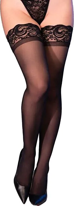 Elevate your outfit with these thigh-high stockings featuring an alluring lace design. Perfect for adding a touch of seduction to any look, they adapt comfortably to your body shape.