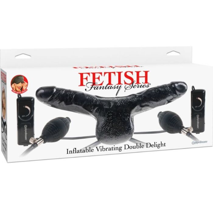Double inflatable penis with vibration