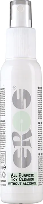 This is a purpose-made toy cleaner in a 100ml spray bottle from EROS. It’s designed to disinfect erotic toys, kegel balls and menstrual cups quickly and safely. What sets it apart is the short contact time: leave the product on the surface for 60 seconds to let the antimicrobial action work, then rinse with water. The formula is water‑soluble, so it won’t leave a stubborn film when rinsed off.