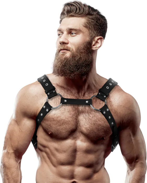 Elevate your confidence and style with this adjustable eco-leather chest harness from Fetish Submissive Attitude. Designed to enhance the male physique, it's great for those looking to make a bold statement.