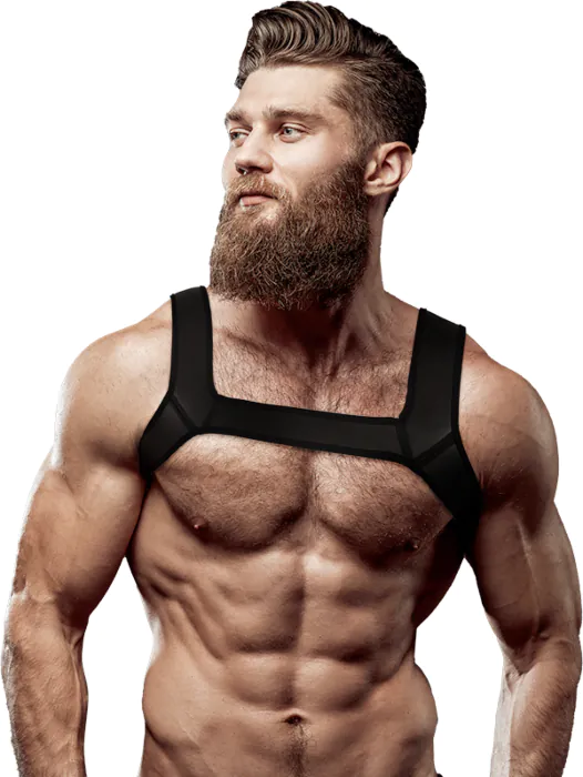 Unleash your confidence and showcase your physique with this chest harness, crafted from vegan leather for a comfortable fit. Its adaptive design ensures it hugs your body perfectly, allowing you to move freely while accentuating your male figure.