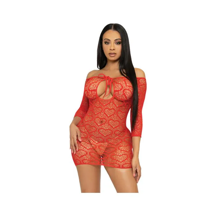 Seamless fishnet mini dress with hearts, off-the-shoulder, and keyhole opening. Dive into an unlimited universe of exquisite lingerie and innovative costumes with Leg Avenue. Beautiful designs, quality materials, and attention to every detail. Celebrate your femininity and flirtatiousness with this mini dress! Ignite passion and seduce with style!