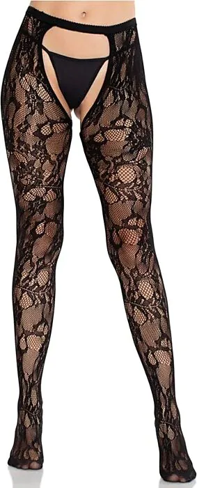 Add a flirtatious touch to your outfit with these exquisite rose lace stockings featuring an open back. Indicado for those who appreciate a blend of romance and daring sophistication.
