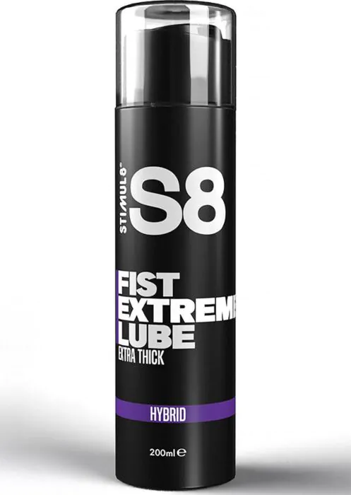 S8 Extreme Fist from STIMUL8 is an extra‑thick hybrid lubricant (silicone + water) made for grips and more intense play. Its LAURETH‑9 content helps relax and reduce sensitivity for smoother penetration, while the long‑lasting, non‑greasy gel means fewer top-ups. Unscented, tasteless and condom compatible — a good choice if you want a dense, durable glide without oil or sticky residue.