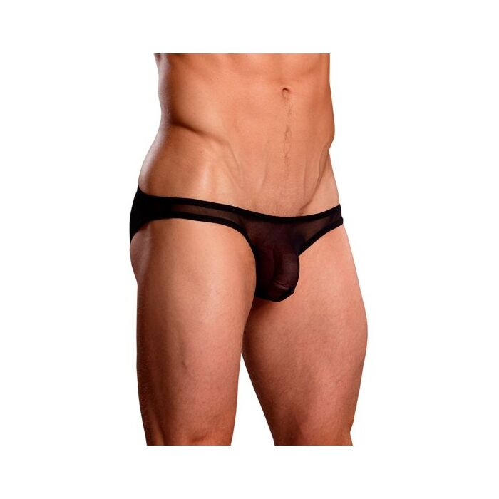 Slip de cintura baja semitransparente de color negro. La cintura es ancha y elástica para acomodarse a tu cuerpo.