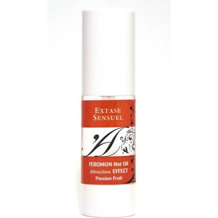 Indulge in a warming sensation with the Extase Sensual Heat Effect Massage Oil infused with passion fruit pheromones. Designed to absorb quickly, this oil nourishes the skin without leaving any greasy traces. Use it to enhance intimacy and create a sensual atmosphere.
