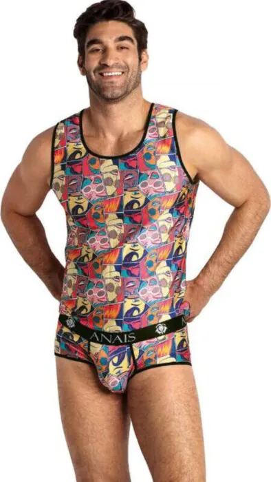 Experience comfort and style with the ANAIS MEN COMICS TOP S, designed in soft modal fabric that hugs your body just right. The sleeveless classic cut not only keeps you cool but also provides a sleek silhouette, making it a great choice for casual outings or lounging at home.