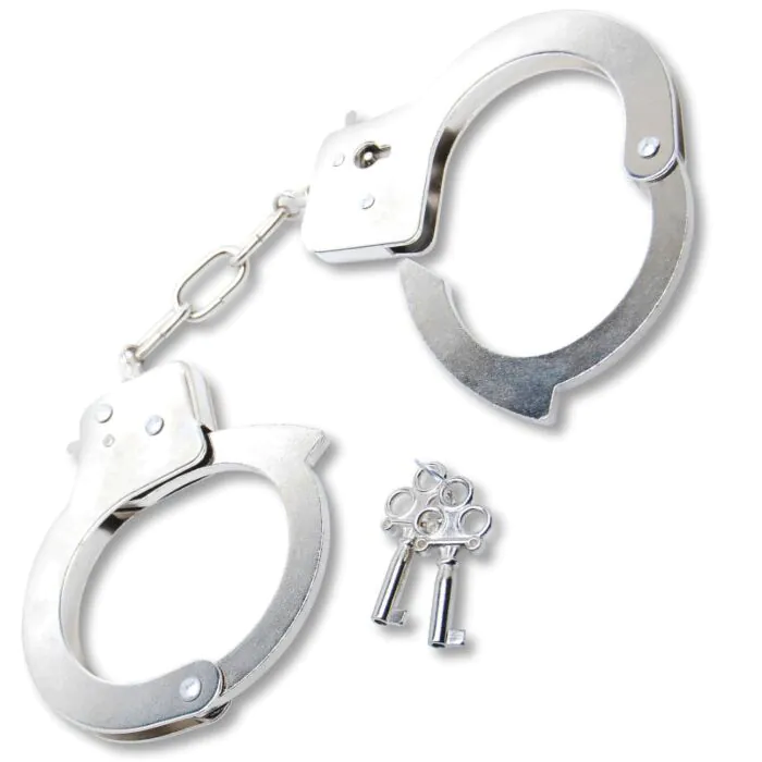 Indulge in new sensations with these metal handcuffs, great for couples looking to spice things up. Comes with two keys and a safety release.
