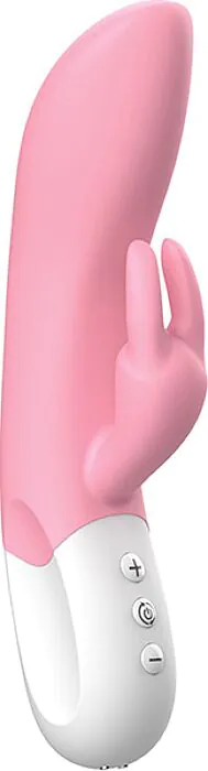 Think of this as a classic rabbit‑style vibrator updated for modern use. The Mighty Rabbit combines a gently curved, flexible shaft to angle towards the G‑spot with a small, rabbit‑shaped arm for direct clitoral vibration. Two independent, powerful motors give you stronger, more focused sensations and the ten vibration modes include steady speeds and patterned options so you can build up from teasing pulses to deeper rumble. The casing is medical‑grade silicone with ABS elements — soft to the touch and body‑safe.