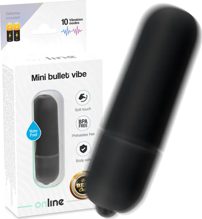 Get ready to experience pleasure to the fullest with the Online black mini vibrating bullet! Small yet powerful, this pleasure gem will take you to new heights of ecstasy at the touch of a button. With 10 vibration modes to explore, from gentle caresses to intense vibrations, you'll find the perfect rhythm for you. Waterproof, phthalate-free, and made from skin-safe material, this vibrating bullet ensures safe and pleasurable fun anytime, anywhere. Featuring a powerful motor inside, this mini vibrating bullet will surprise you with its intensity. Get ready to vibrate with pleasure! Plus, forget about batteries – we include 3 LR44 batteries so you can enjoy instantly! Ready for a journey to limitless pleasure? Get the Online black mini vibrating bullet and unleash your wild side!
