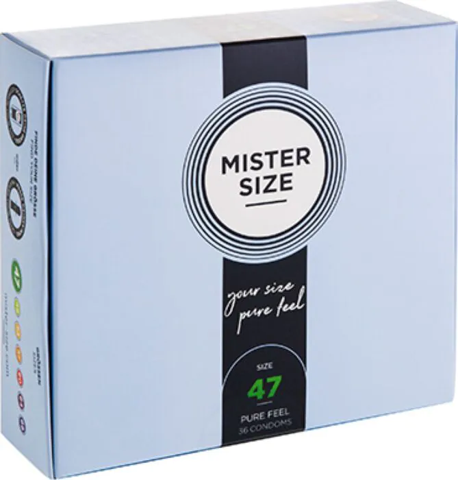 Experience a secure fit with MISTER SIZE 47mm condoms. Designed for those with slimmer sizes, they offer a flexible and comfortable sensation during intimacy.