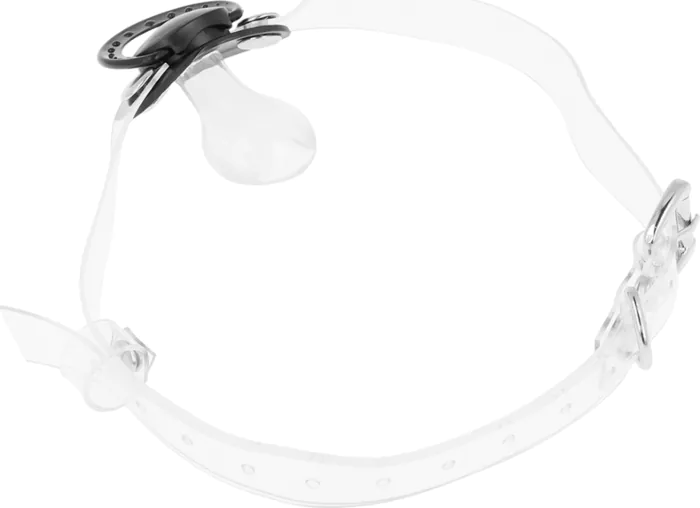 Indulge in sensory play with the OHMAMA FETISH Transparent Pacifier Gag, featuring adjustable plastic straps for a comfortable and secure fit. Made from phthalate-free transparent plastic, it offers a sleek aesthetic while ensuring safety during use.
