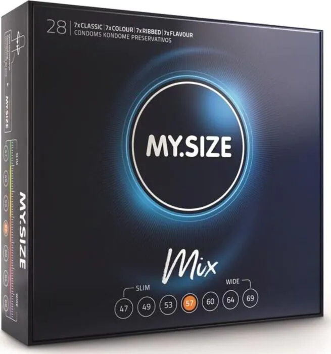 Experience a new level of comfort with MY SIZE MIX condoms. Featuring adjustable widths, these condoms ensure a snug fit for everyone. Choose from classic, ribbed, flavoured, or coloured options to suit your mood.