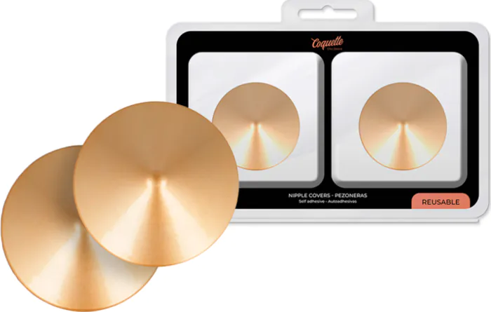 Elevate your intimate wardrobe with these daring gold circle nipple covers from Coquette Chic Desire. The self-adhesive design allows for easy application and removal, ensuring you can quickly switch up your look. Made from durable metal, these covers create a striking impact while being reusable for your convenience.
