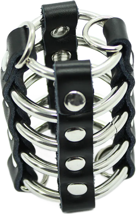 Penis Cage Ohmama Fetish with Metal Rings and Leather Straps