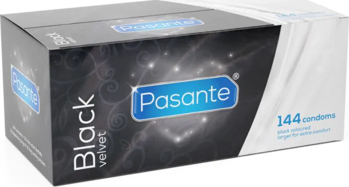Elevate your intimate moments with Pasante Black Velvet condoms. The intense black hue adds sophistication, while the natural latex ensures comfort and safety.