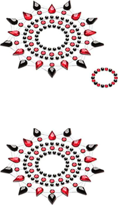 This is a decorative breast set from Petits Joujoux designed to add sparkle to an outfit or performance. The pair is formed of small crystals fixed into adhesive patches, and the set incorporates more than 300 shiny stones for a very glittering effect. You can wear them discreetly under clothing or display them for a strip or stage look — they’re made to be comfortable for short to moderate periods.