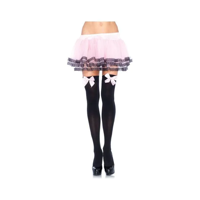 Leg Avenue Black Opaque Stockings with Pink Bow