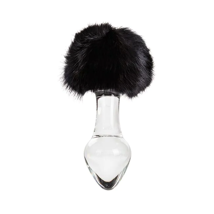 For those wanting a compact glass anal plug with temperature-play and a decorative fur base.
