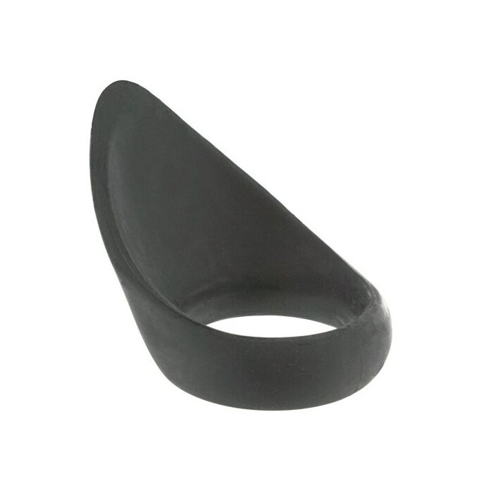 Anillo negro de silicona con forma de lengua, diseñado para que se ajuste de forma prieta y cómoda alrededor de tu pene y testículos, con el fin de masajear con delicadeza tu perineo.