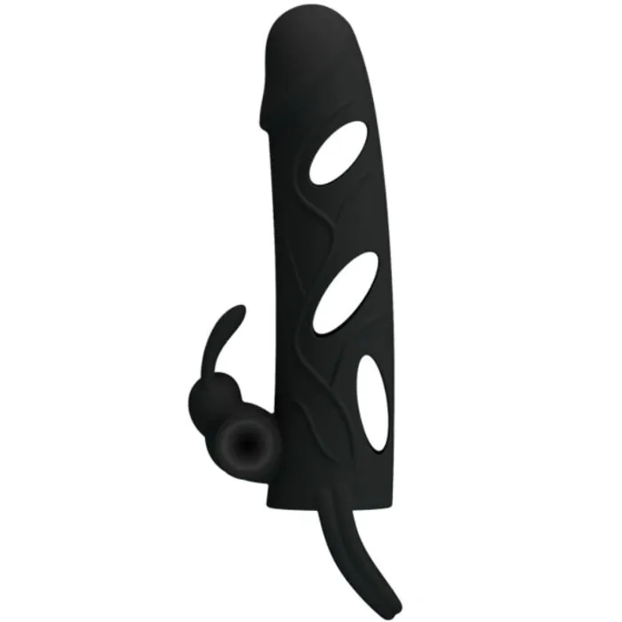 Think of this as a wearable sleeve that gives you extra length and surface texture while adding a small internal bullet and an external rabbit arm for clitoral contact. The built-in ring secures around the testicles to give a snugger fit and can help delay ejaculation in some users. Because it’s made from high-quality silicone and finished with external textures, it feels soft against skin and adds noticeable girth.