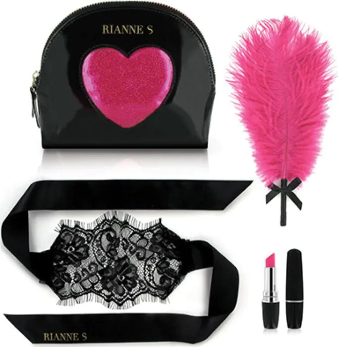 A compact couples kit that centres on discretion and playful teasing. The standout is a pocket-sized lipstick-style vibrator that looks like makeup, paired with a soft pink feather and a black silk-and-lace blindfold. Great for trying light sensory play or discreet solo sessions; battery-powered for portability, so bring spares rather than relying on long runtime.