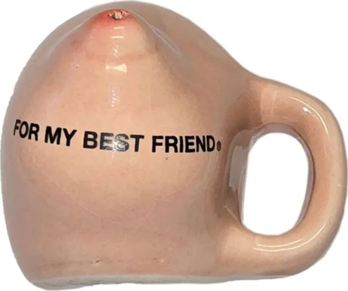 Bring a playful twist to your gatherings with this ceramic shot glass shaped like a female bust. Featuring embossed breasts and the cheeky phrase 'FOR MY BEST FRIEND', it adds a fun element to any occasion. With a magnetic base, you can easily stick it to metal surfaces like your fridge, making it a decorative conversation starter as well.