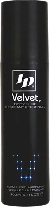 ID Velvet silicone lubricant provides a luxurious, long-lasting glide for intimate moments. Indicado for those seeking frictionless pleasure.
