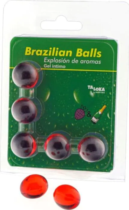 Experience an explosion of pleasure with Taloka's Brazilian Balls, infused with a passionate aroma of strawberries and champagne. These five Brazilian balls are designed for a distinctive sensory experience, dissolving upon contact with body heat to release a lubricating essence.