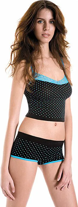 ExtrasTop with lace details on the neckline, Shorts with polka dots design, Colour: black and blue