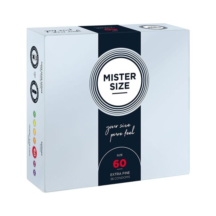 - Custom fit: Just like you wouldn't wear shoes two sizes too big, your condoms also deserve a personalized fit. With Mister Size 60, you'll feel like the condom has been specially designed for you.