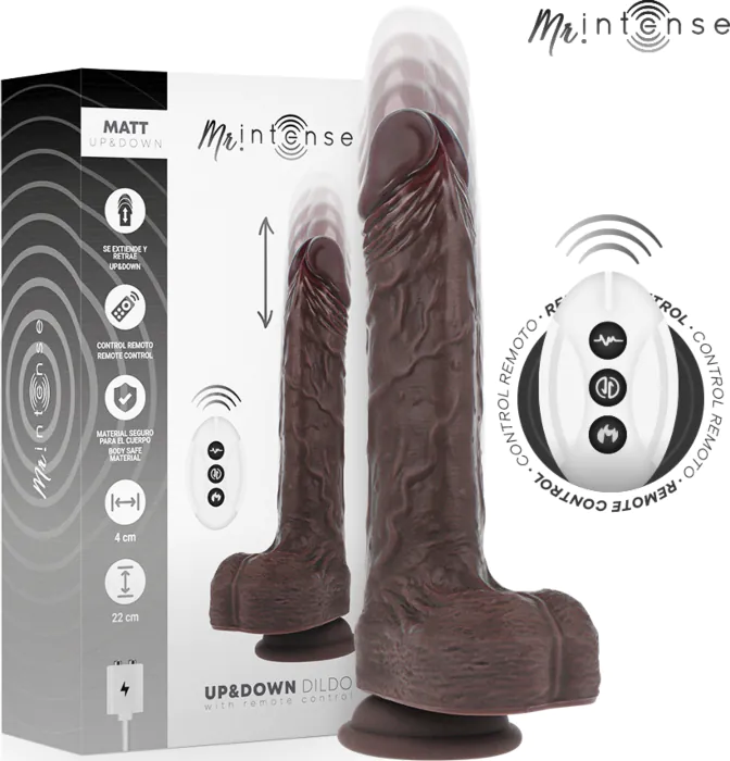 Experience deep, immersive pleasure with MATT, a 22 cm realistic vibrator featuring powerful up and down motion and a remote control for total freedom.