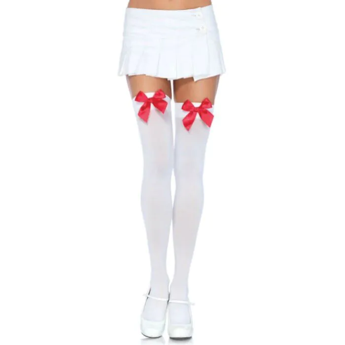 Take the plunge into experimentation and seduction with Leg Avenue White Nylon Stockings with a red bow. Get yours now and add a hint of mischief and sophistication to your style!